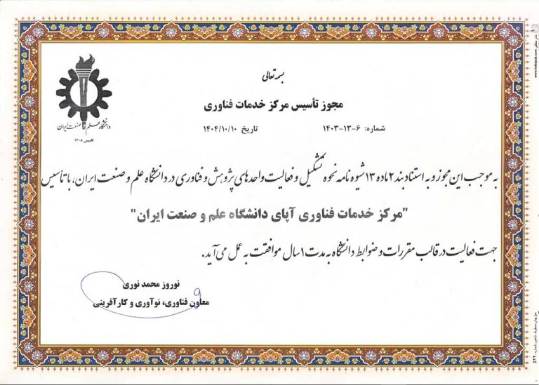 دپارتمانهای تخصصی مرکز خدمات فناوری آپای دانشگاه علم و صنعت ایران